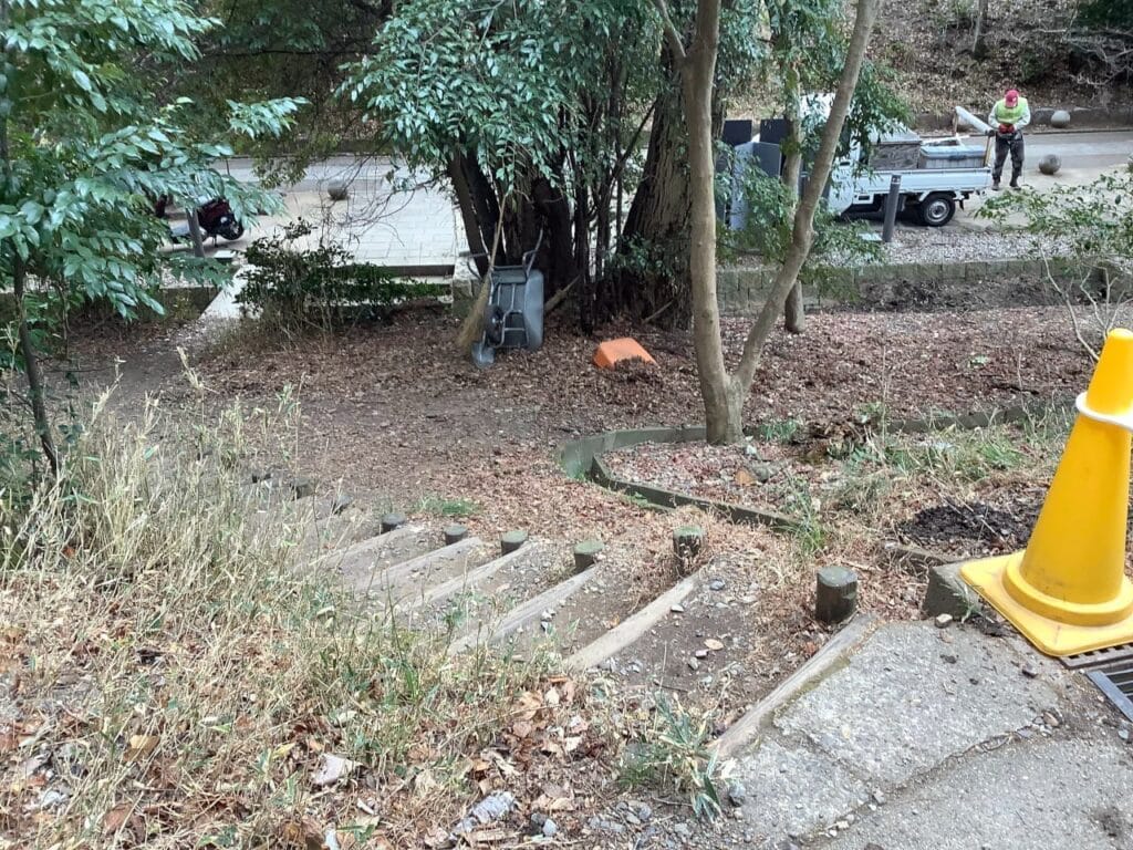 でもこの日は登山自体に支障が出ないように、登山口休憩所横の階段が迂回路にされてました。
