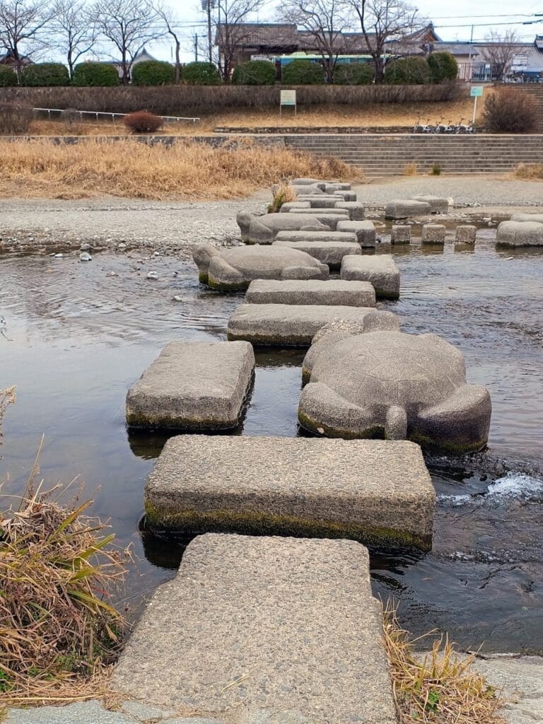 「たまこラブストーリー」や「舞妓さんちのまかないさん」にも登場する飛び石があります。