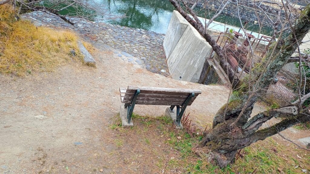 同じようなベンチが並んでいますが、画面左の一番上流側が久美子ベンチ。