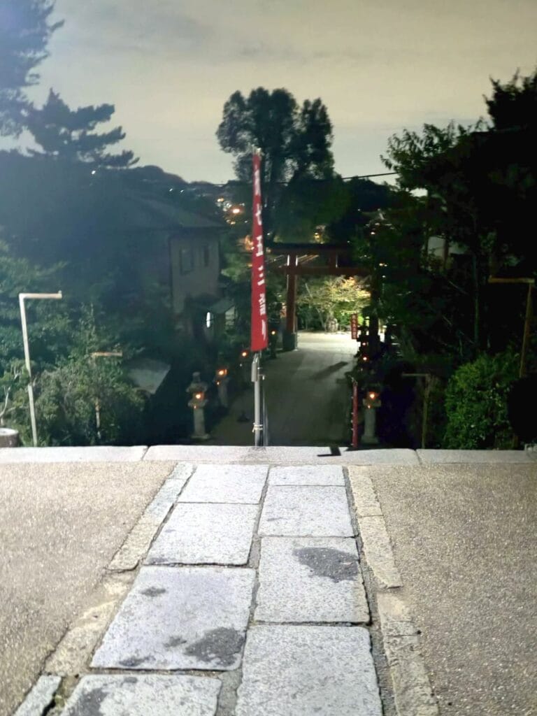 登山道に沿った巡礼者のスマホの明かりはまるで提灯行列、巡礼に神聖さを感じました。