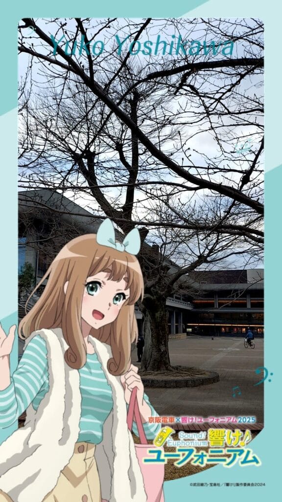 写真には撮ってませんけど、画像の木の奥のほうに進んだら、優子先輩が部長から香織先輩マジエンジェルモードに切り替わり、久美子があすか先輩から魔法のチケットを受け取るあの場所になります。