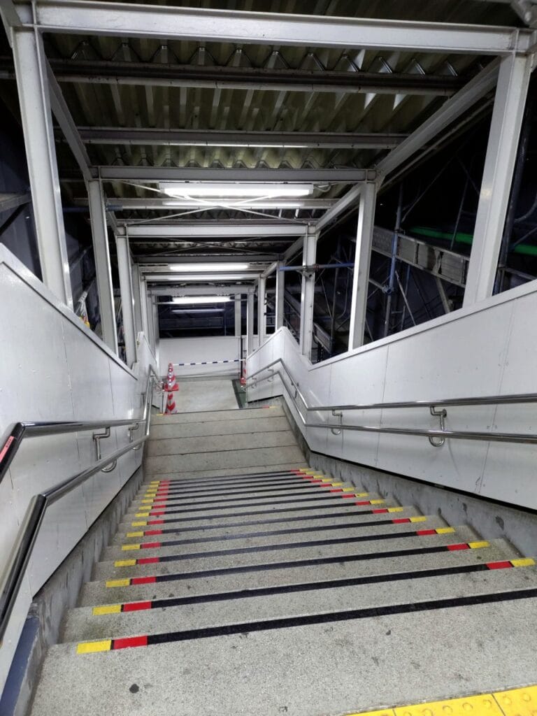第一話でしゃくまんえんを落とした跨線橋の一部は、改札外の東西自由通路として残されていました。