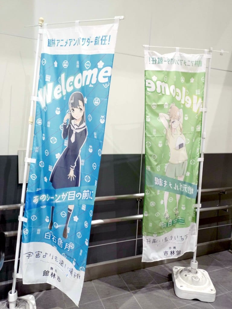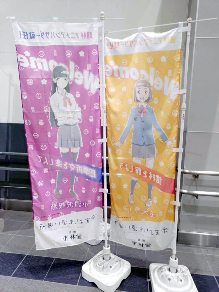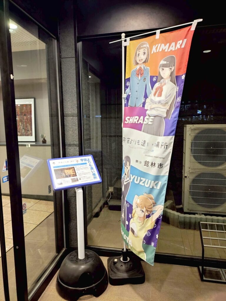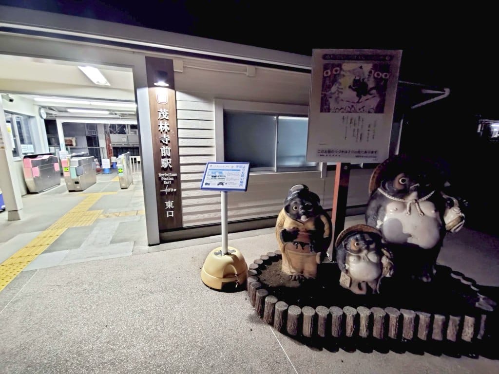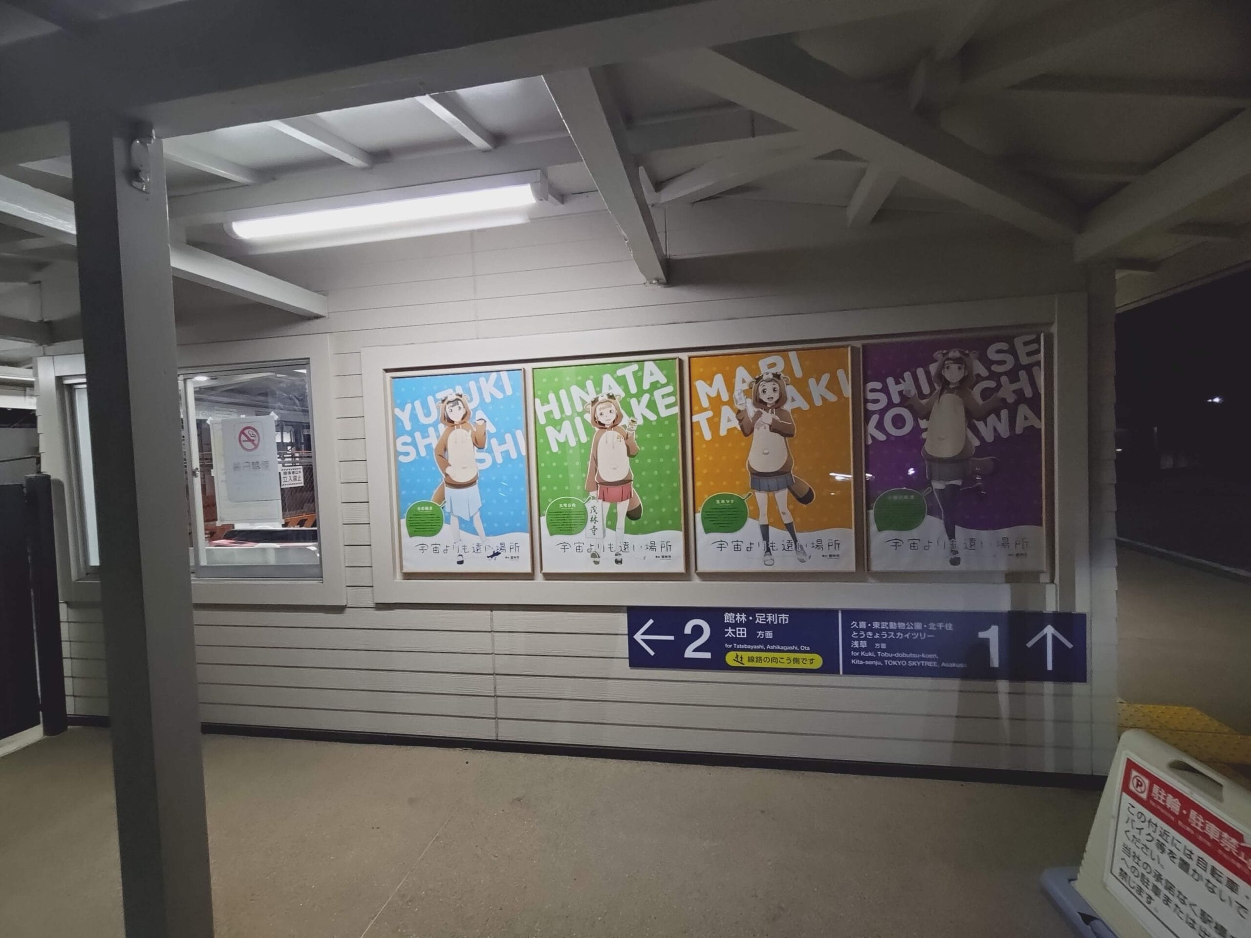 東口改札前ではたぬコスな4人の館林ビジュアルがお迎え。