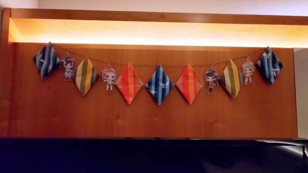 ホテルコラボルームにも飾ってたちびキャラアクキーは台座付き、しかもめぐっちゃんとリンもありました。