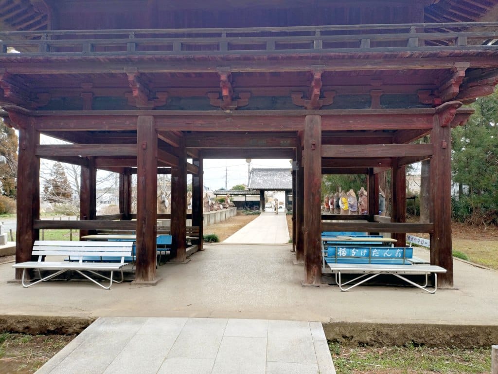 良い酒が飲めそうだのベンチは、一般的には仁王像が鎮座するはずの場所である三門下にありました。