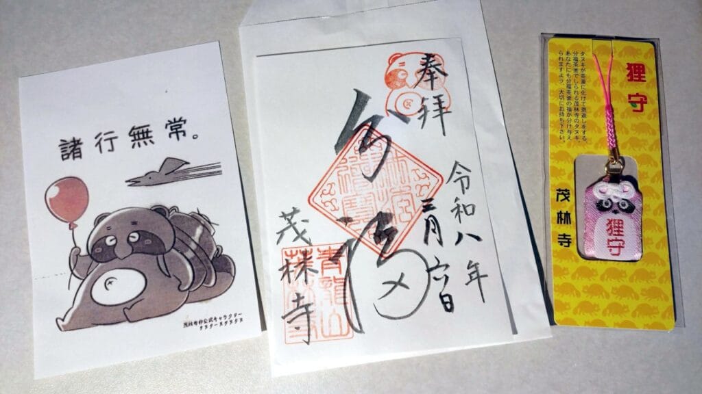 館林ビジュのキマリが手にする「分福」御朱印を拝受。