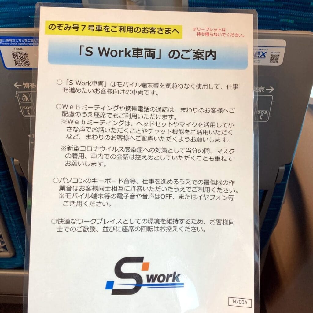 JR東海の公式サイト。ビジネスパーソンの皆様が新幹線での移動時間に快適に働ける「S Work車両」のご紹介。|JR東海