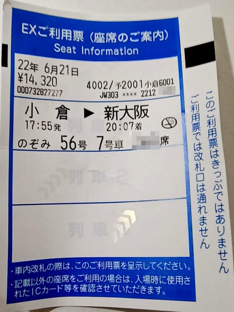 そこで小倉-新大阪の予約をEXアプリで速い号に振り替えしました。