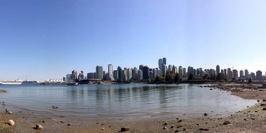 バンクーバー突端のスタンレー公園からの中心市街の眺めです。