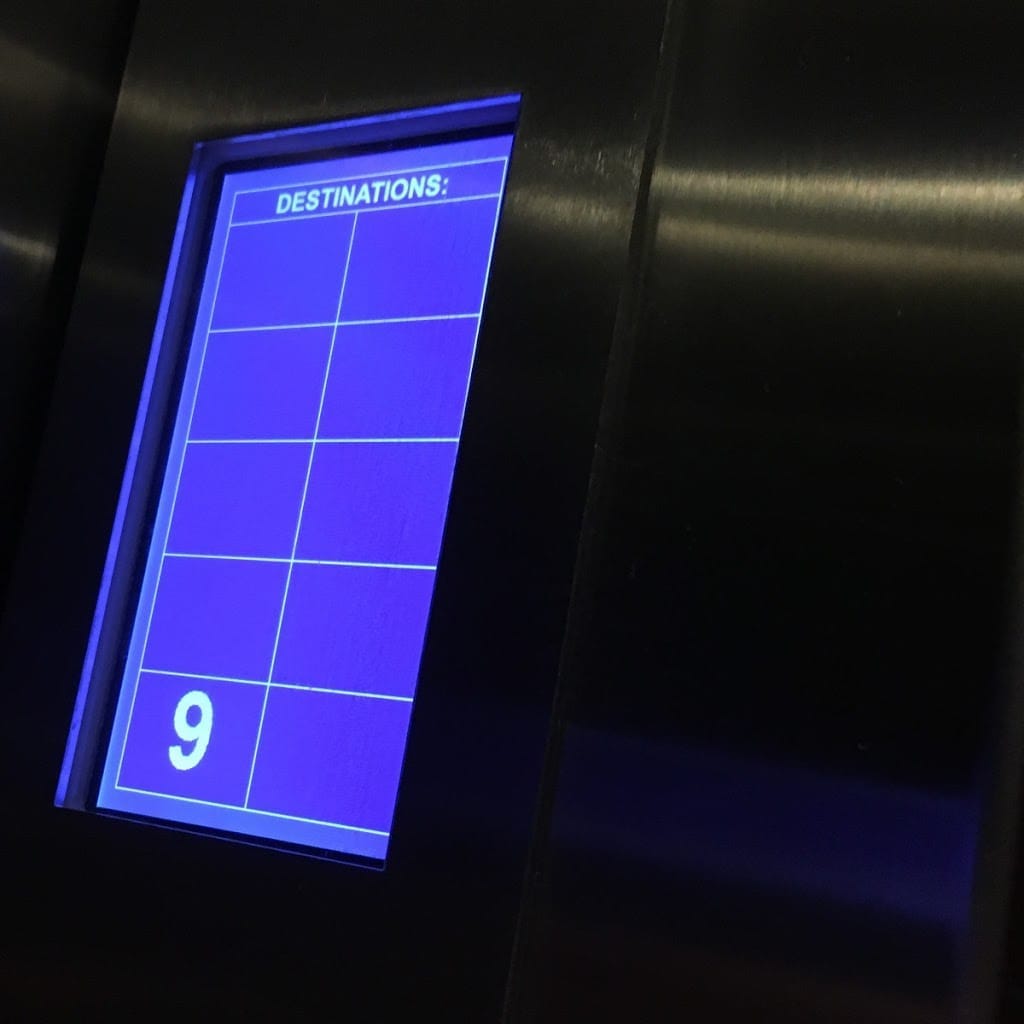 エレベーター室にはいくつかのこのようなタッチパネルがあり、ここで目的階をタッチします。