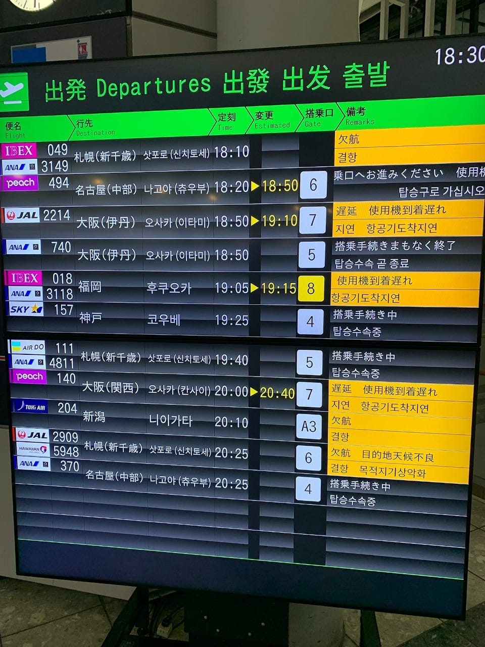 その20時発の予定が、使用機材遅れで20時40分発に変更。