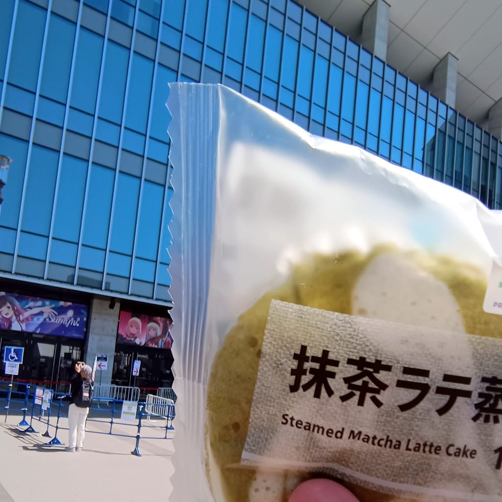 このあと食にありつけるかの心配をしなくてもいいように、横浜駅地下のコンビニで買っておいた抹茶蒸しケーキです。